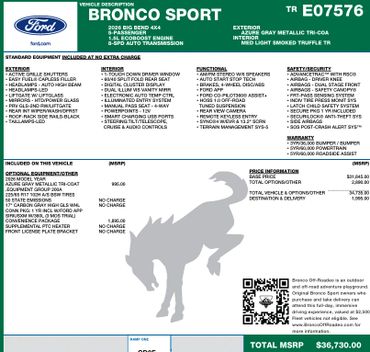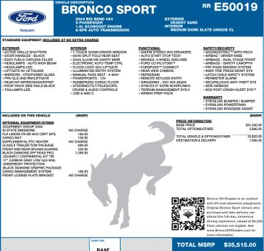 The little brpther to the full size, the Bronco Sport is the perfect small suv. With multiple powertrains and levels of capability, there is sure to be a trim level that fits your small SUV needs.